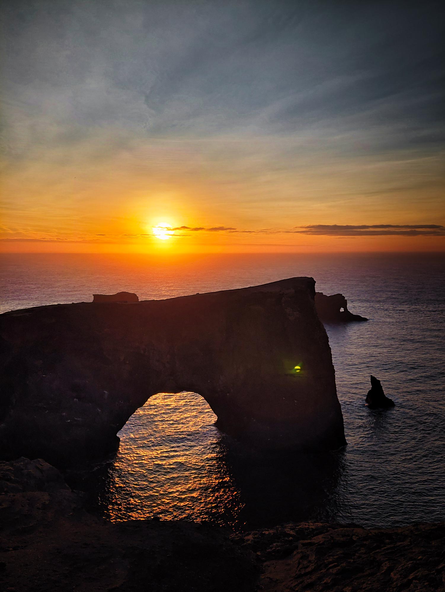 Beim idyllisch gelegenen Vík í Mýrdal gibt es noch zwei weitere Sehenswürdigkeiten, die wir unbedingt auch in perfekten Licht festhalten wollten: den Reynisfjara Black Sand Beach und Dyrhólaey, was übersetzt soviel wie Tor-Loch-Insel bedeutet – völlig klar, wenn man diese Insel einmal gesehen hat (siehe Bilder). Gut dass wir hier diese Namen nur schreiben müssen und nicht aussprechen.