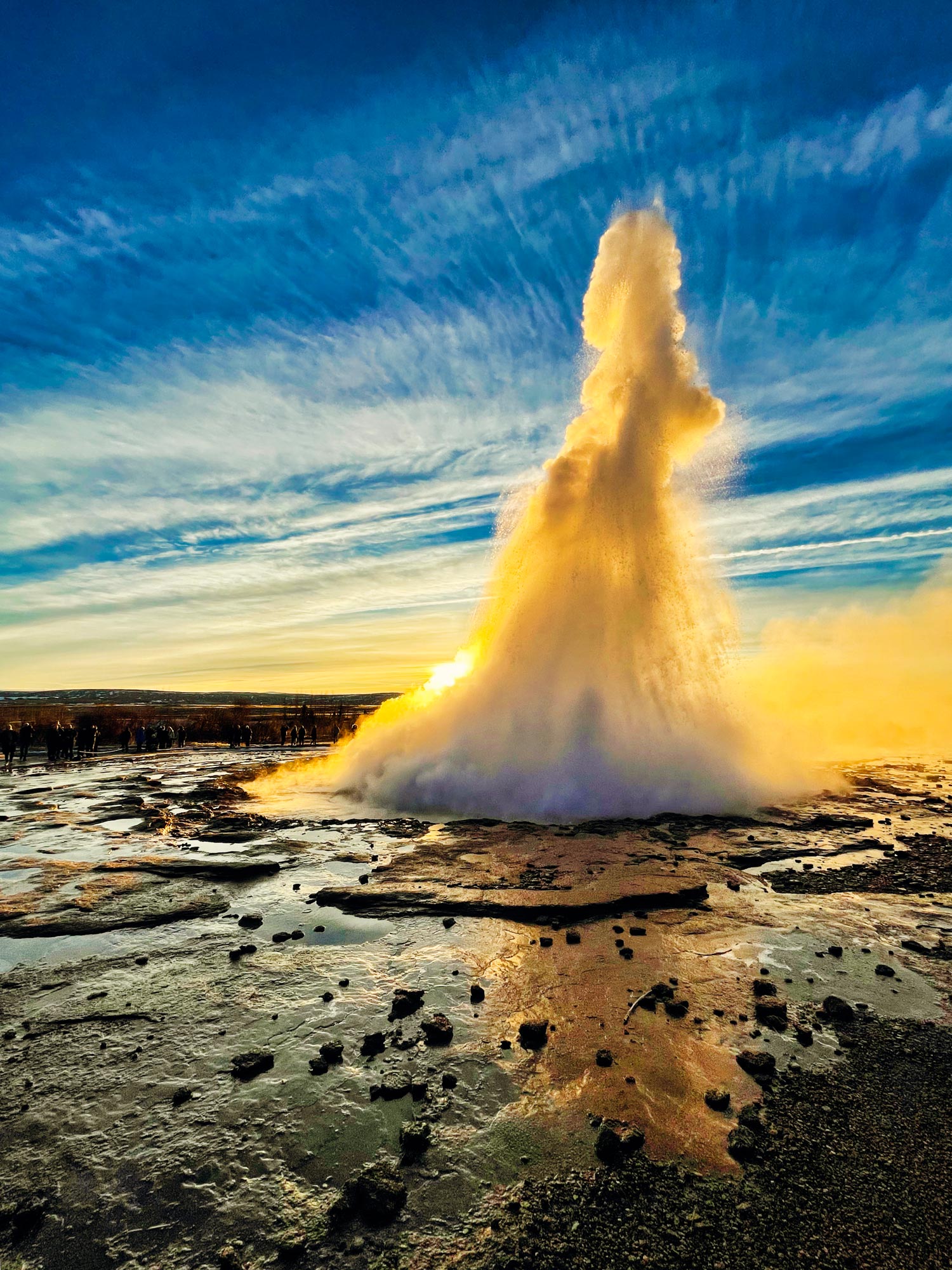 Strokkur mit Touristen -