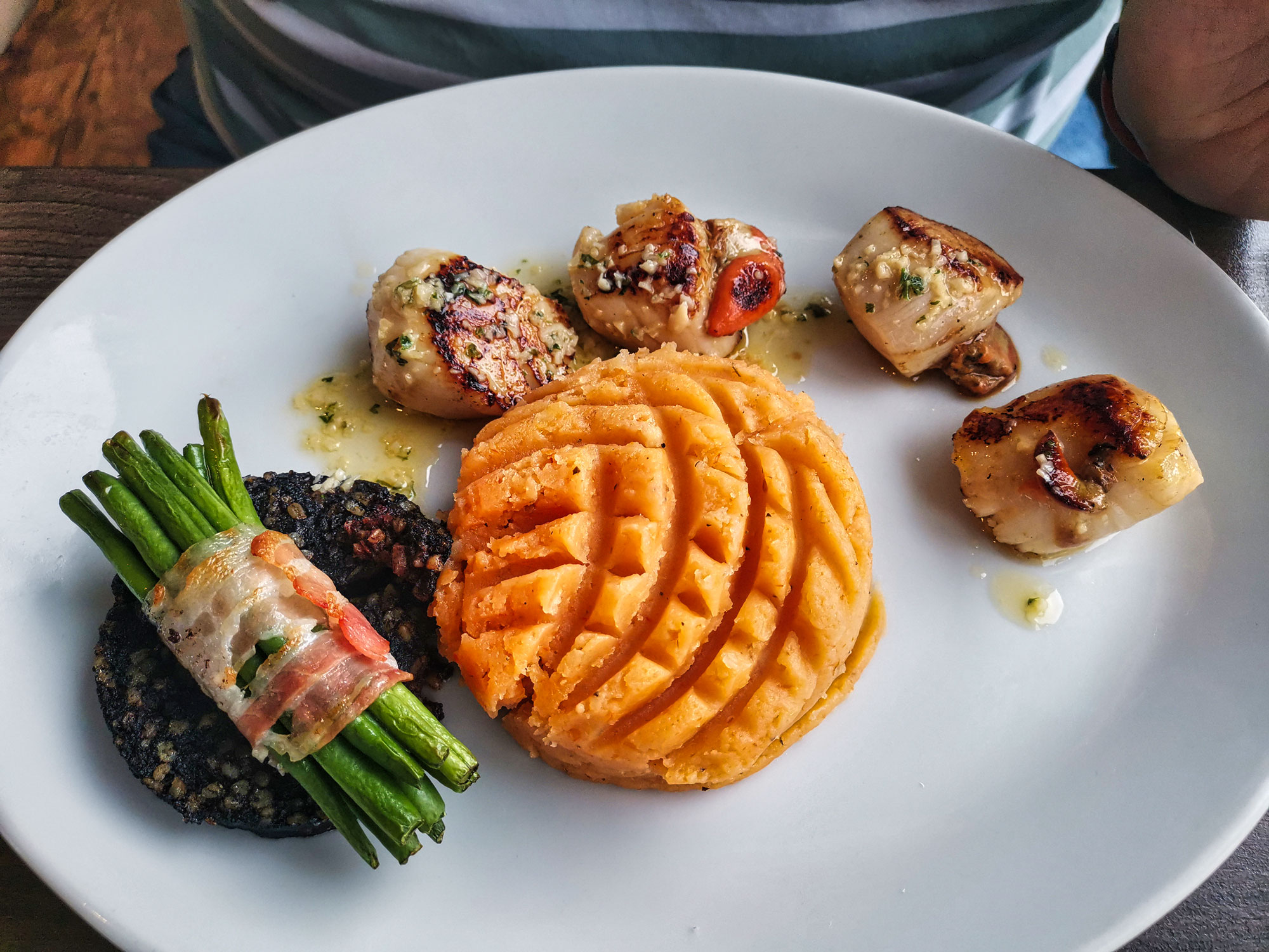 So sind wir also auch bei dieser Reise in dieses Restaurant und die Jakobsmuscheln und die Fish & Chips von Gunnar waren göttlich. Zum Nachtisch gab's noch einen Sticky Toffee Pudding – unbedingt probieren, wer das nicht kennt und die Gelegenheit bekommt – und Gunnars Augen begannen zu leuchten. Ja Essen kann definitiv glücklich machen.