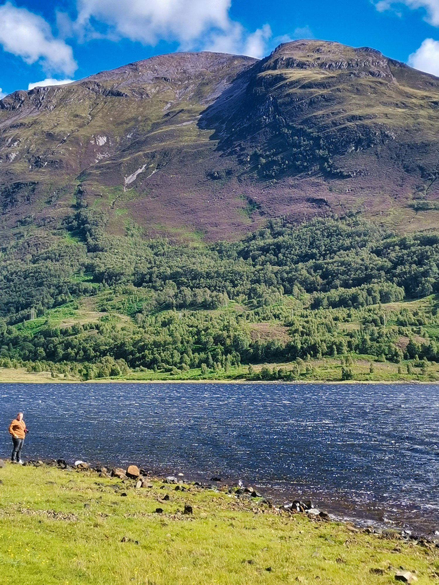 Die ersten Tage in den Highlands haben wir uns am Loch Leven versüßt. Wie wir finden ist es eines der schönsten Lochs in Schottland. Um den ganzen See geht eine kleine Ringstraße, überall gibt es Parkbuchten direkt am See und nachts ist es super ruhig. Und wirklich immer hat man einen tollen Blick auf diesen von hohen Bergen eingerahmten Meeresarm, der gefühlt alle 10 Minuten anders aussieht (siehe Fotos). Mal spiegelt er die Berge gegenüber, mal schäumt er geradezu von der Bewegung der Wassermassen und mal wird die hübsche Seagull-Insel von unzähligen kleinen wippenden Wellen umspült.