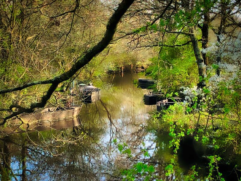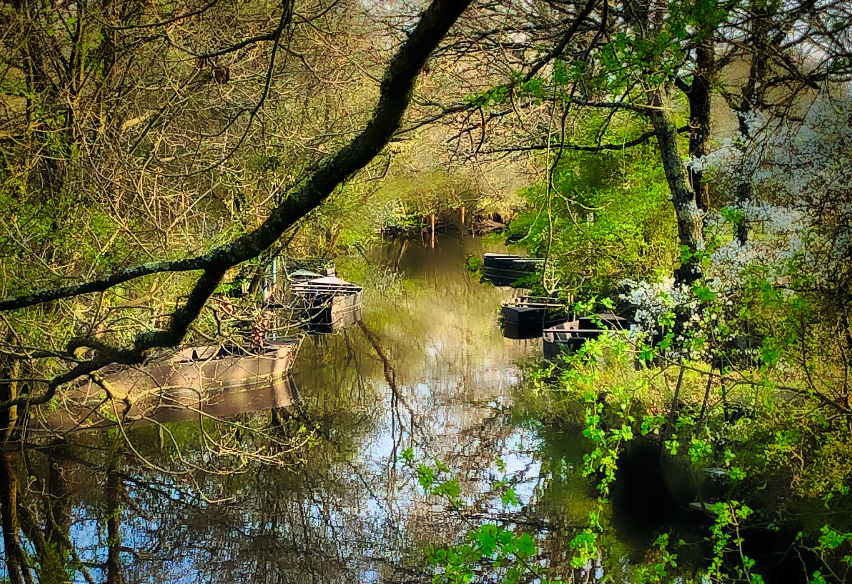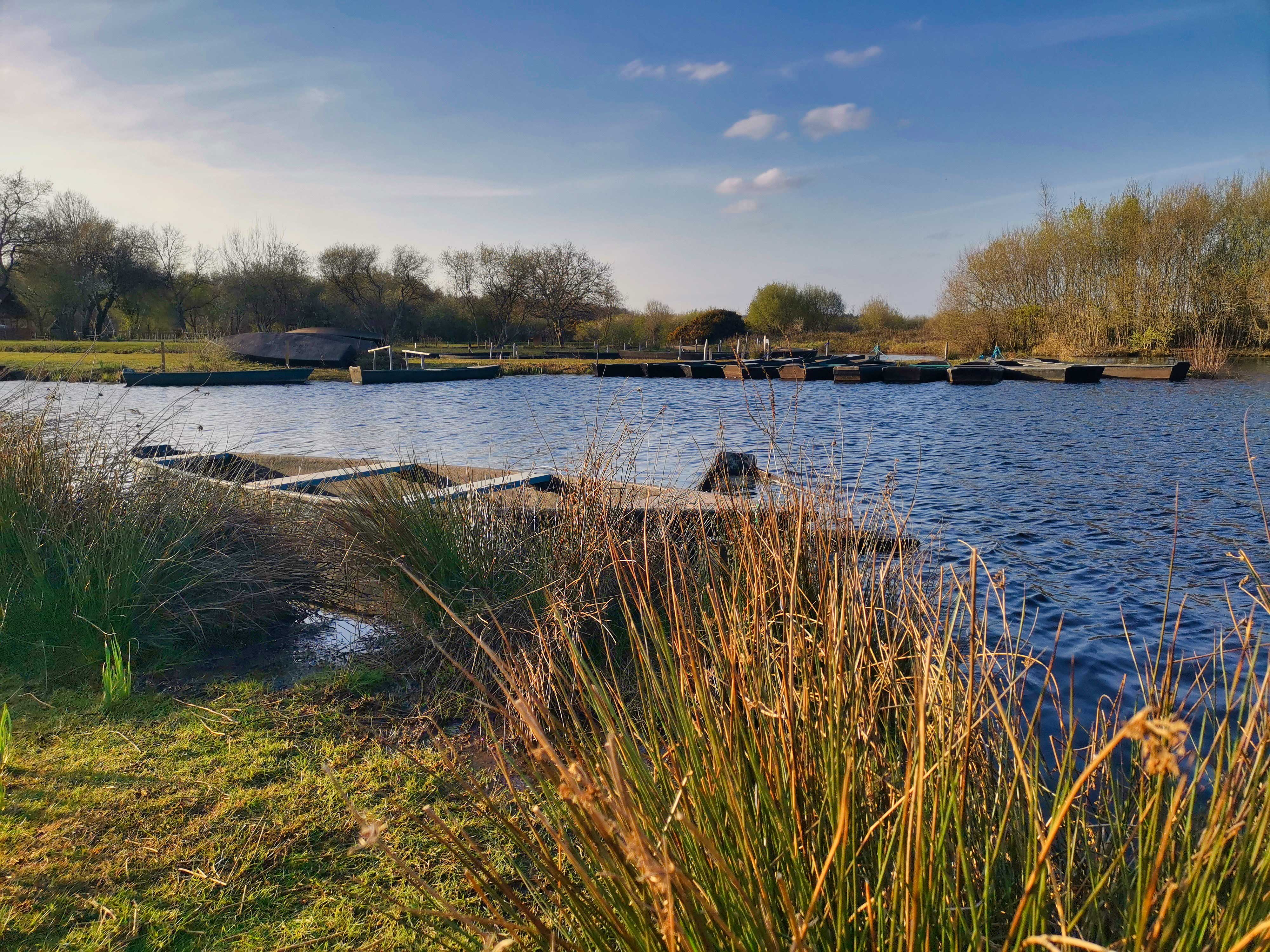 Eine Sache wollen wir nicht unter den Tisch fallen lassen bei dem ganzen Alltag. Wir waren diese Woche in einem Moor im Naturpark Brière. Und das ist nicht irgendein Moor, sondern das zweitgrößte Frankreichs. Eigentlich hatten wir zu dieser Jahreszeit gar nicht damit gerechnet, dass das klappen könnte. Wir haben nur auf gut Glück einen der vielen Bootsverleihe angesteuert und siehe da, kein Problem und gleich für den nächsten Morgen ein Boot reserviert. Aber nicht nur das, die Inhaberin hat uns gleich noch einen Übernachtungsplatz direkt auf einer Landzunge am Moor empfohlen und so haben wir einen wundervollen Sonnenuntergang alleine im Moor erlebt. Nicht nur die mittlerweile warme Sonne hat uns lange draussen sitzen lassen. Wir waren Zuhörer eines Konzertes von Enten, Reihern, Gänsen, unserem ersten Kuckuck in diesem Jahr und vielen anderen unbekannten Entertainern. Wir konnten uns nicht satt hören.