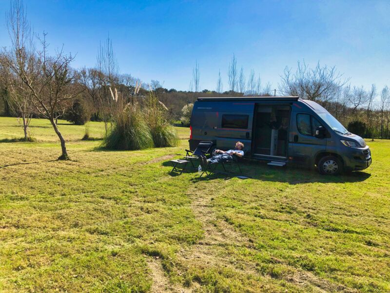 Wenn man sich die üblichen Vanlife-Marketingbotschaften so ansieht, dann sitzen alle alleine beim Sonnenuntergang in der ersten Reihe am Meer. Manchmal stimmt das auch bei uns. Aber ab und zu bietet sich auf der Durchreise doch nur ein aus allen Nähten platzender Stellplatz und man ist in seinem Wohnraum 50cm von der Außenwand des Nachbarn entfernt und hört jedes Wort oder sonstige Geräusche. Auch das gehört dazu – wir könnten auch jederzeit umdrehen und nach Hause fahren, wenn uns das alles nicht mehr taugen würde.