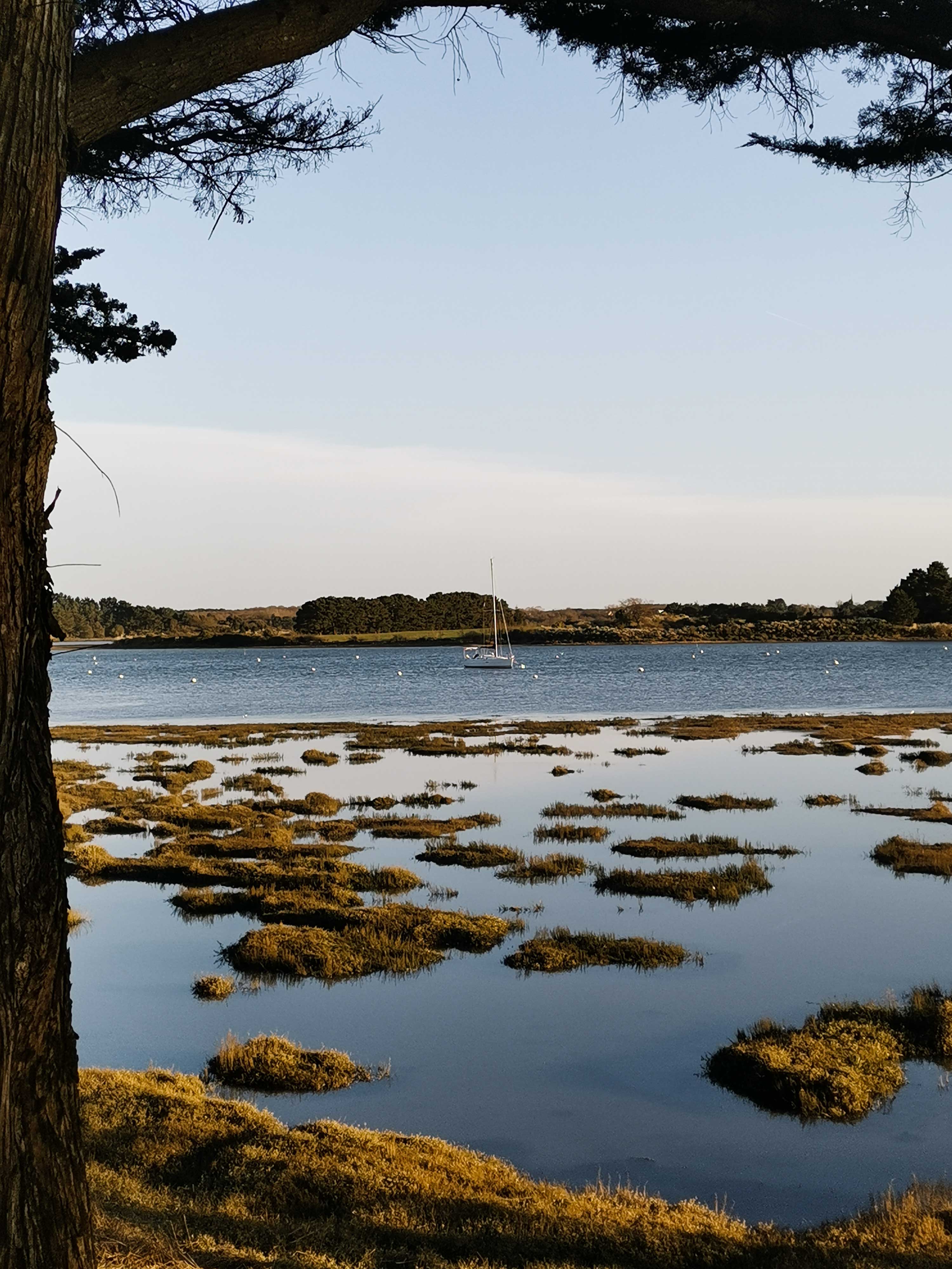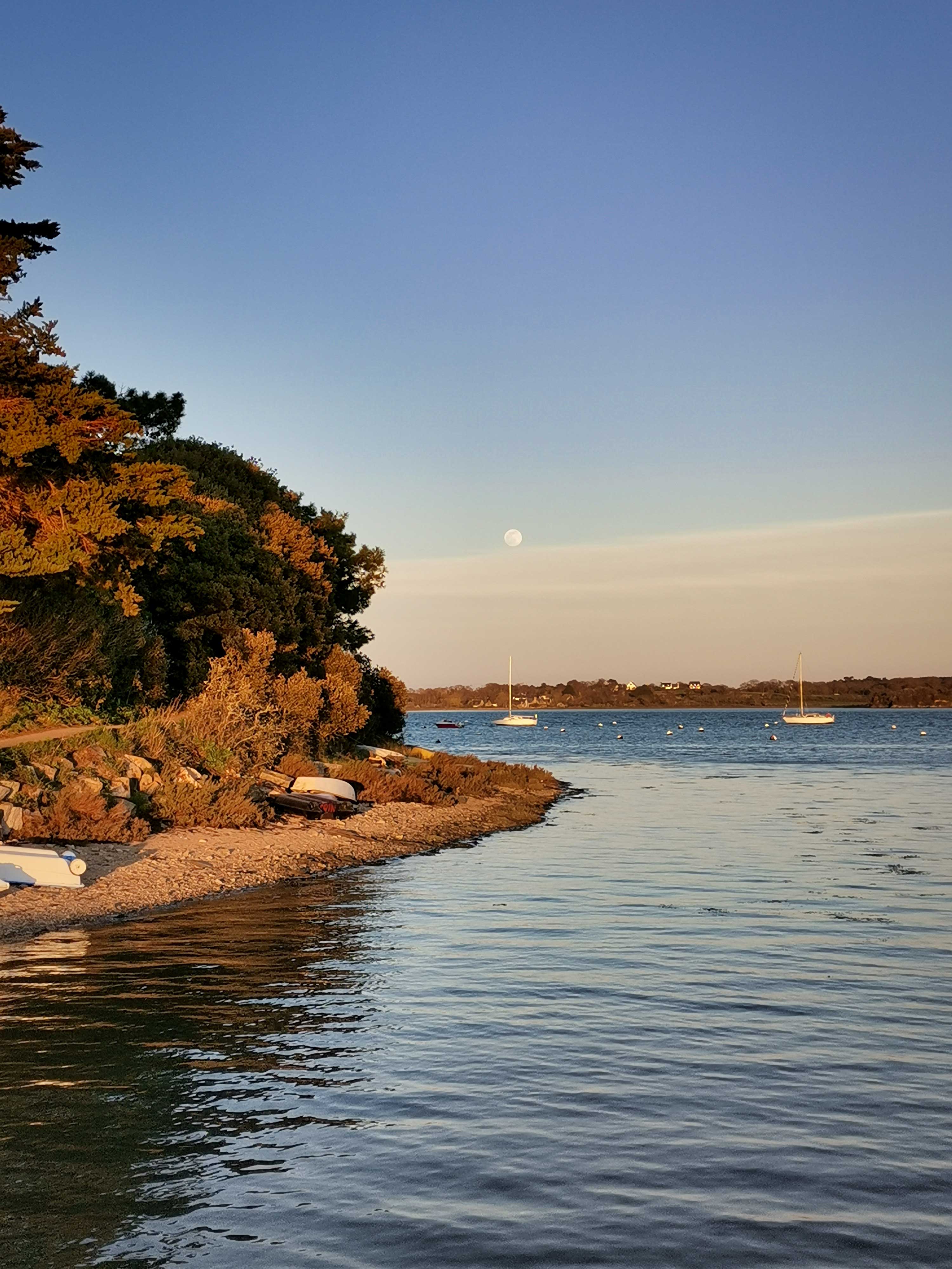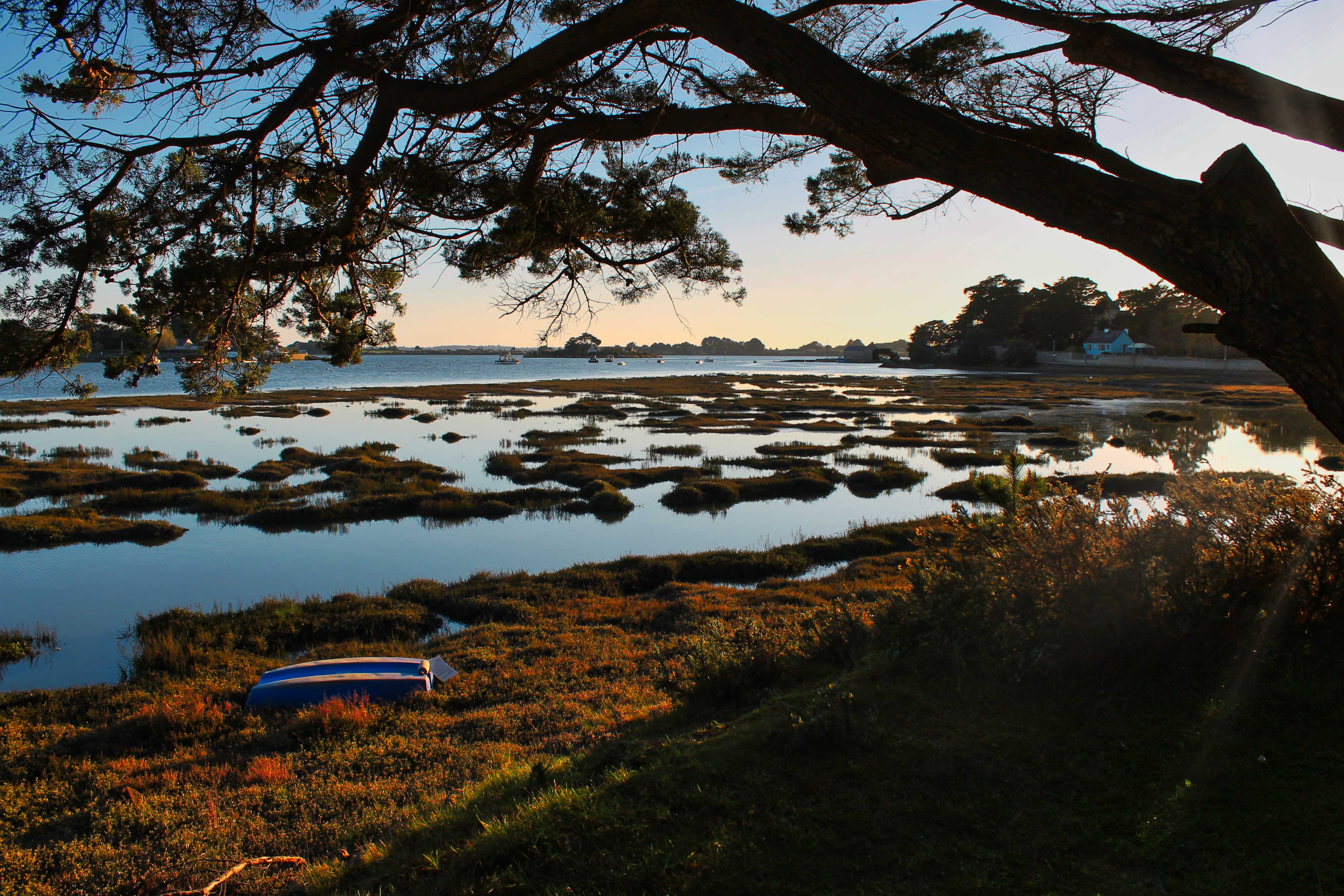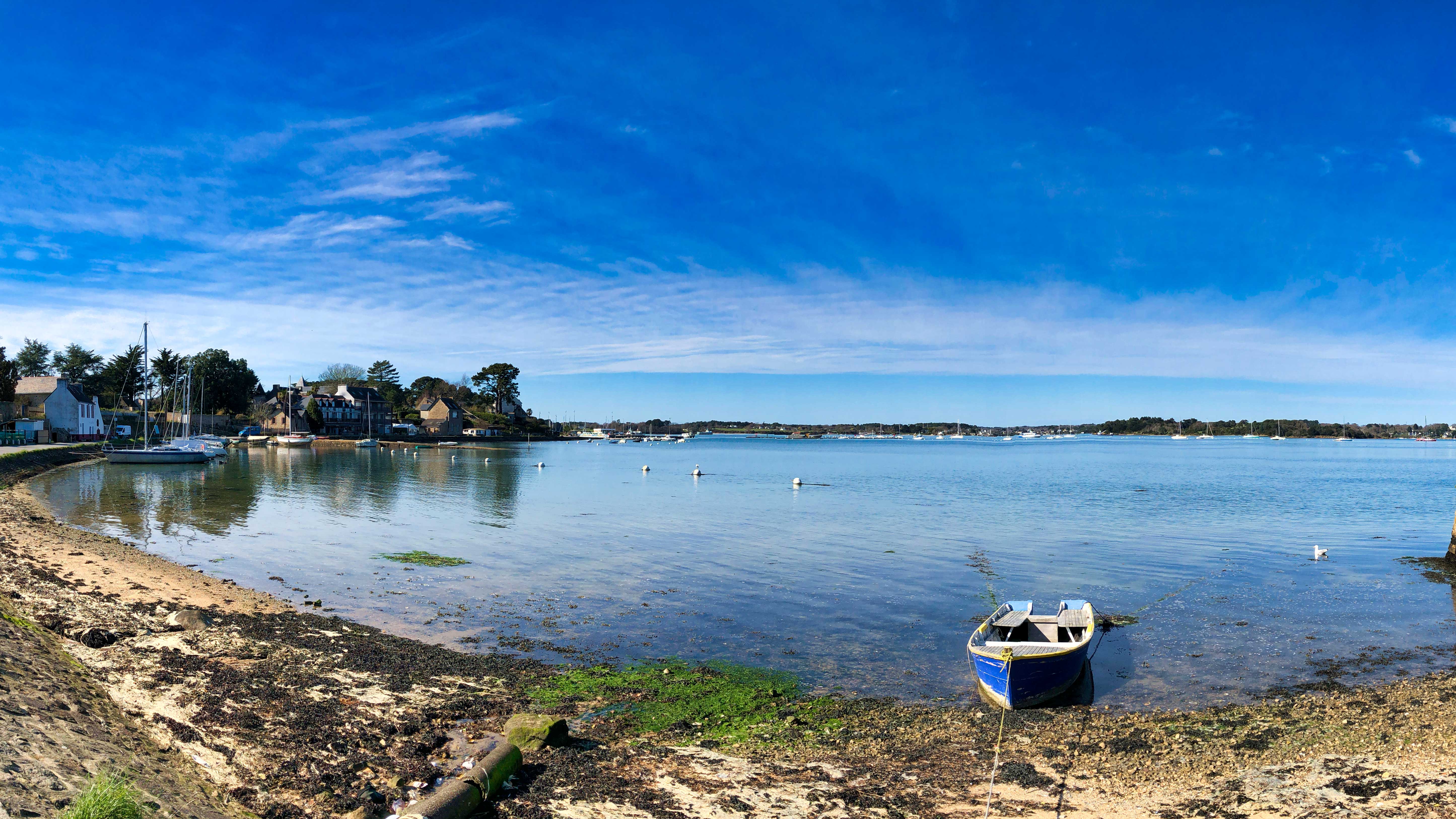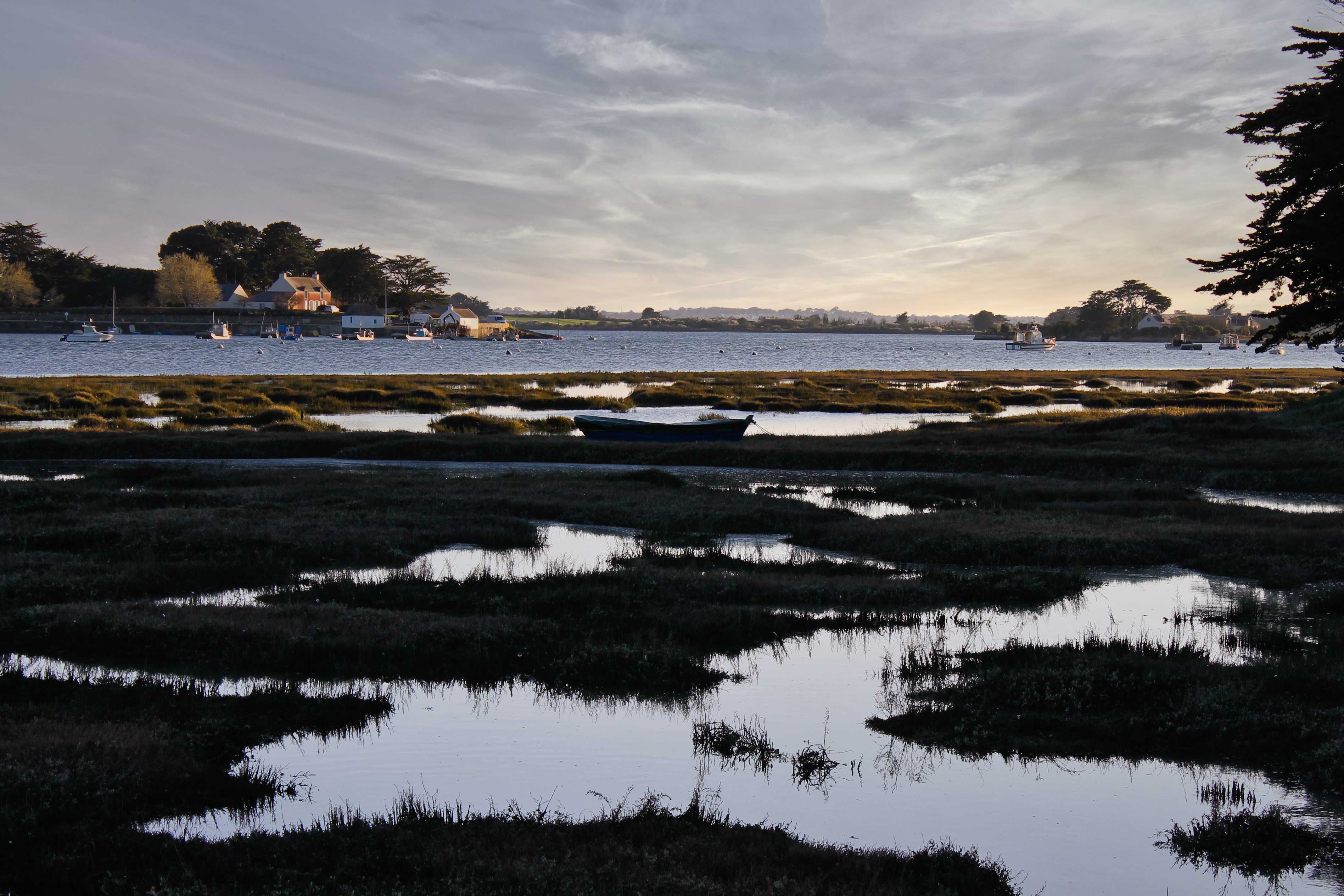 Um nur ein paar der tollen Locations zu nennen, zu denen es uns auf dem Weg um das kleine Meer geführt hat: Locmariaquer, Port Blanc, Pointe Du Bill und Montsarrac. Letzterer ist uns besonders in Erinnerung geblieben: eigentlich ein verschlafenes Nest – in Wikipedia wird es nicht einmal erwähnt. Wir haben dort einen wunderschönen Tag mit einem goldenen Abendspaziergang erlebt. Feststellen konnten wir auch hier, dass die Grundstücke meist nie an das Ufer angrenzen und schmale romantische Wanderwege sich an den Ufern entlangschlängeln, um jedem die Möglichkeit zu bieten, diese wundervolle Landschaft geniessen zu können. Dafür unseren herzlichsten Dank – wir nahmen dieses Geschenk an und empfehlen die Region sehr gern weiter.