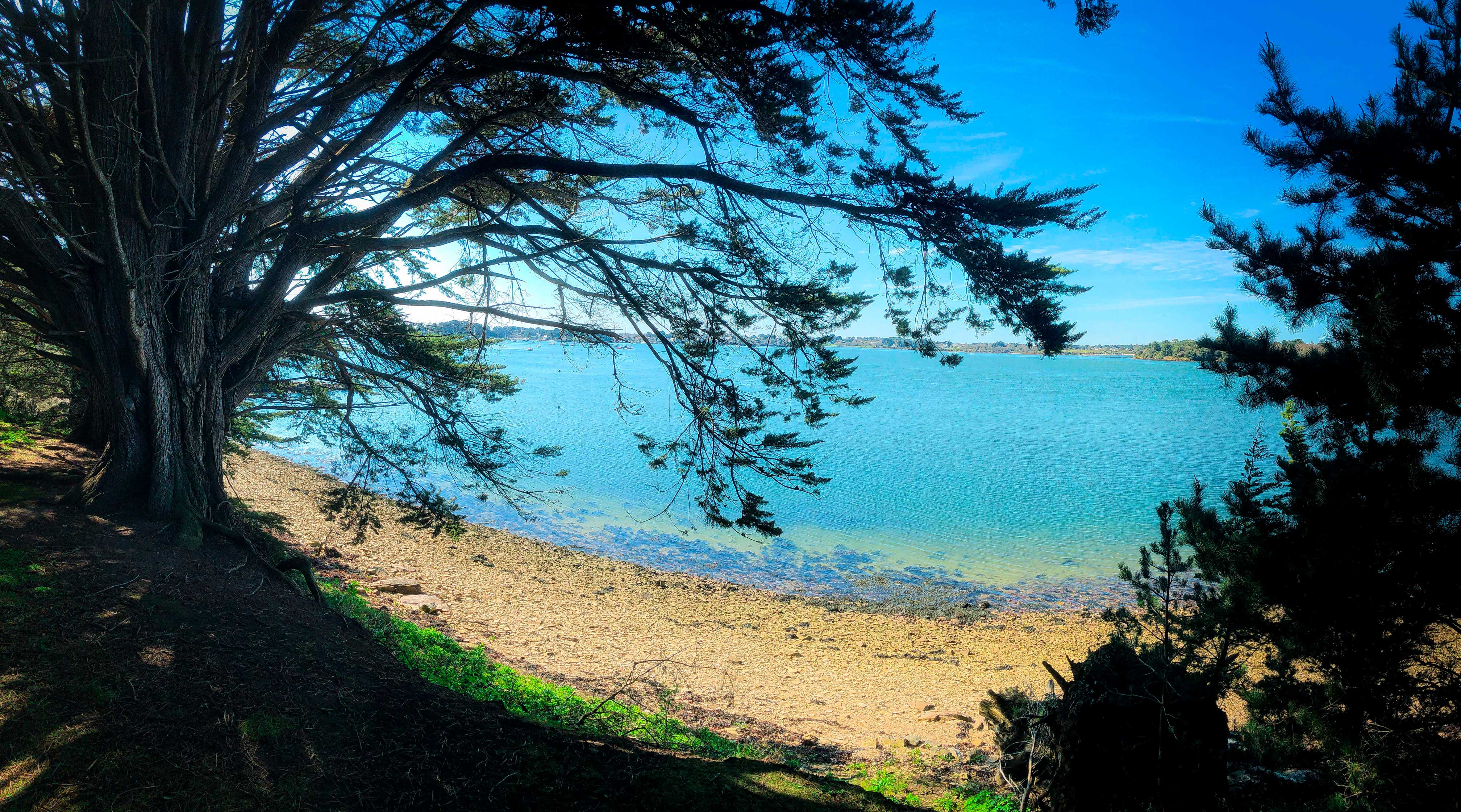 Hiermit hatten wir nicht gerechnet. Nun sind wir doch schon am letzten Zipfel der Bretagne angelangt und werden noch einmal von einer Gegend überrascht, welche so gar nicht in unser favorisiertes Landschaftsbild passt: der Golf von Morbihan, der nun eben gar nicht wild und rauh ist. Dafür besitzt dieser etwas anderes, nicht minder aufregendes: Charme. Und es ist gerade nach den vielen verschiedenen Küstenstreifen, welche wir in der letzten Zeit erleben durften dieser Kontrast, der uns beide gleichermaßen fasziniert.