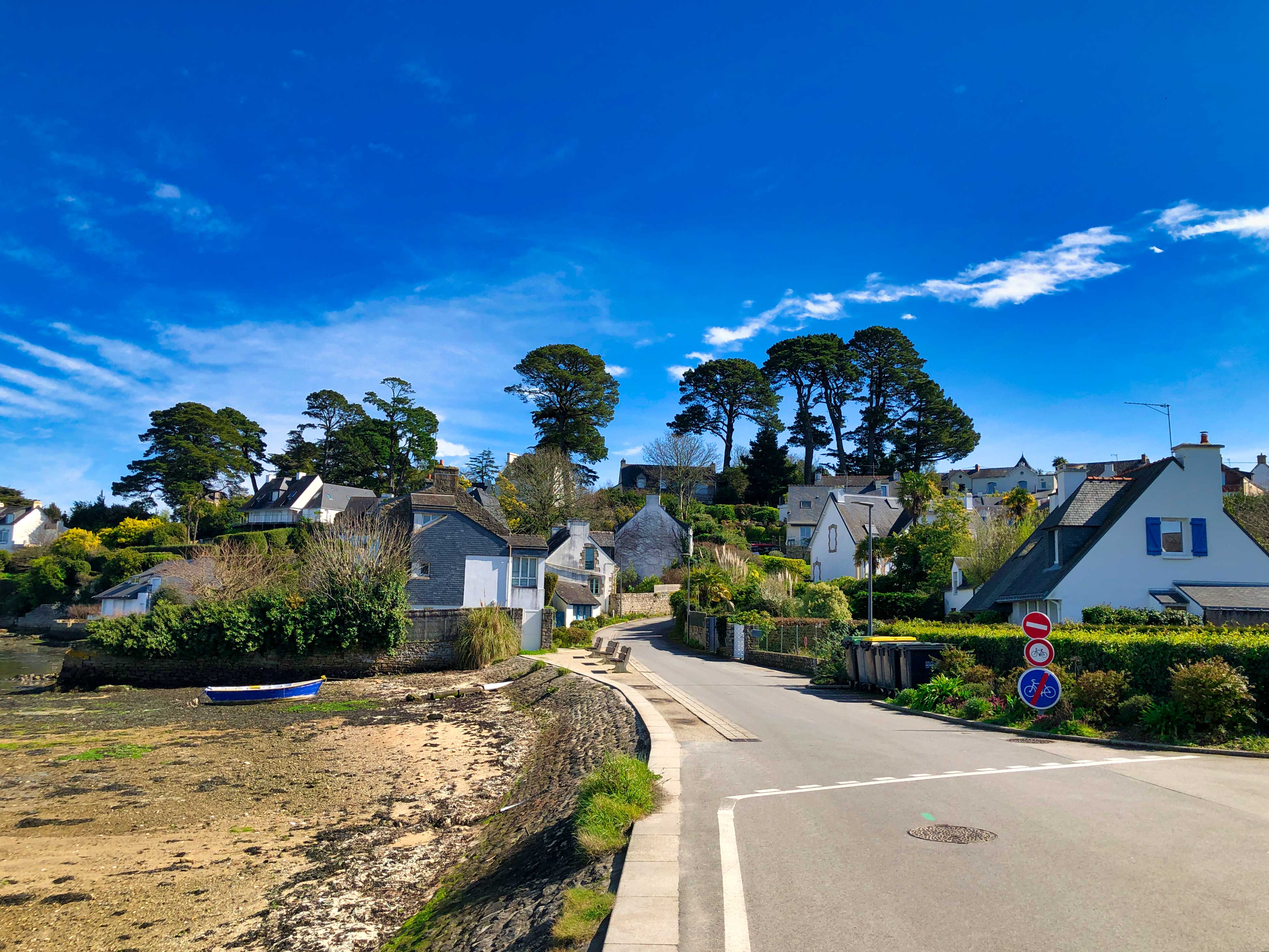 „Mor bihan“, heißt auf Bretonisch „das kleine Meer“ und dieser Golf beinhaltet sage und schreibe 40 Inseln, ist etwas zurückgelagert und wird durch die Halbinsel Rhuys vom offenen Meer getrennt. Hinter dieser Halbinsel verbirgt sich ein kleines Paradies mit unzähligen pittoresken Buchten. Wir hätten auch gerne mehr der 40 Inseln besucht – allerdings gibt es in der Vorsaison nur eine Fährverbindung auf die Île aux Moines. Dafür haben wir das kleine Meer vom Festland her fast umrundet und faszinierend schöne malerische Orte entdeckt.