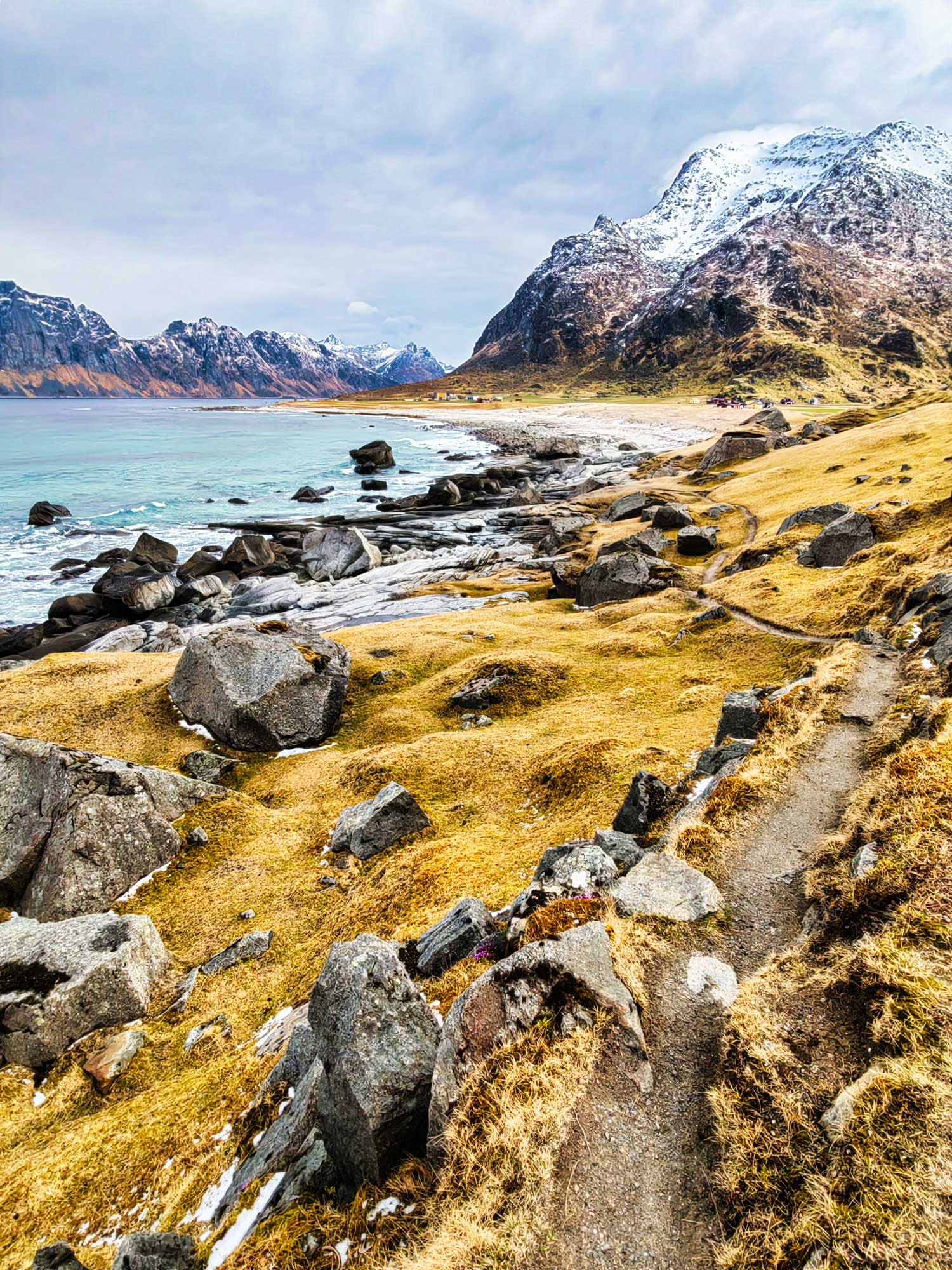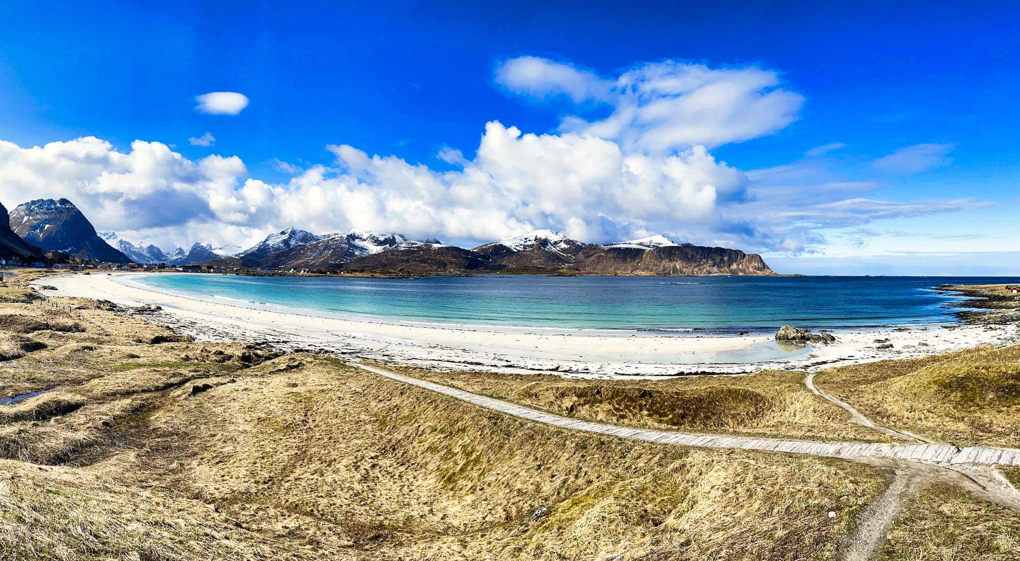 Haukland ist übrigens auch schon auf der 2. Insel der Lofoten gelegen, nach Moskenesøya kommt Vestvågøy und die 3. Insel heißt Austvågøya.
