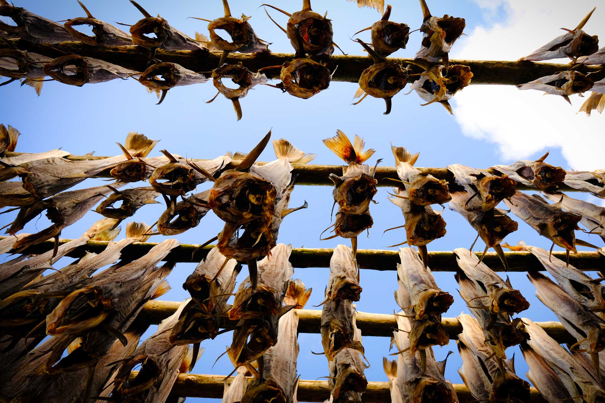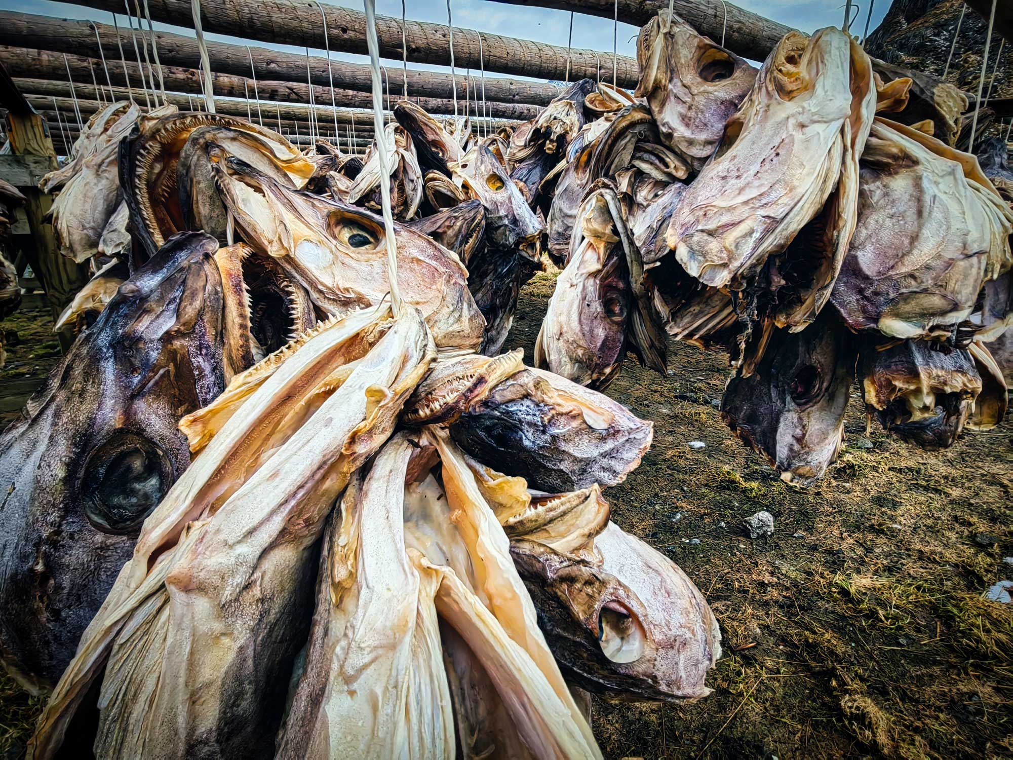 Absolut alleine waren wir dort, das lag vielleicht auch an dem markanten Fischgeruch, welcher von zahlreichen Trocknungsgerüsten ausging, auf den die Fischköpfe vor sich hintrockneten. Wie wir gelesen haben "Der Duft des Geldes". Besagte Köpfe werden für viel Geld als Eiweißquelle für Suppen ins Ausland verkauft. Das kann man sich bei dem gammeligen, faulig-süßen Gestank während des Trocknens nur schwer vorstellen. Angeblich gewöhnt man sich aber an diesen Geruch – auch kaum vorstellbar. Und trotz des Geruches, der Ausblick war es absolut wert.