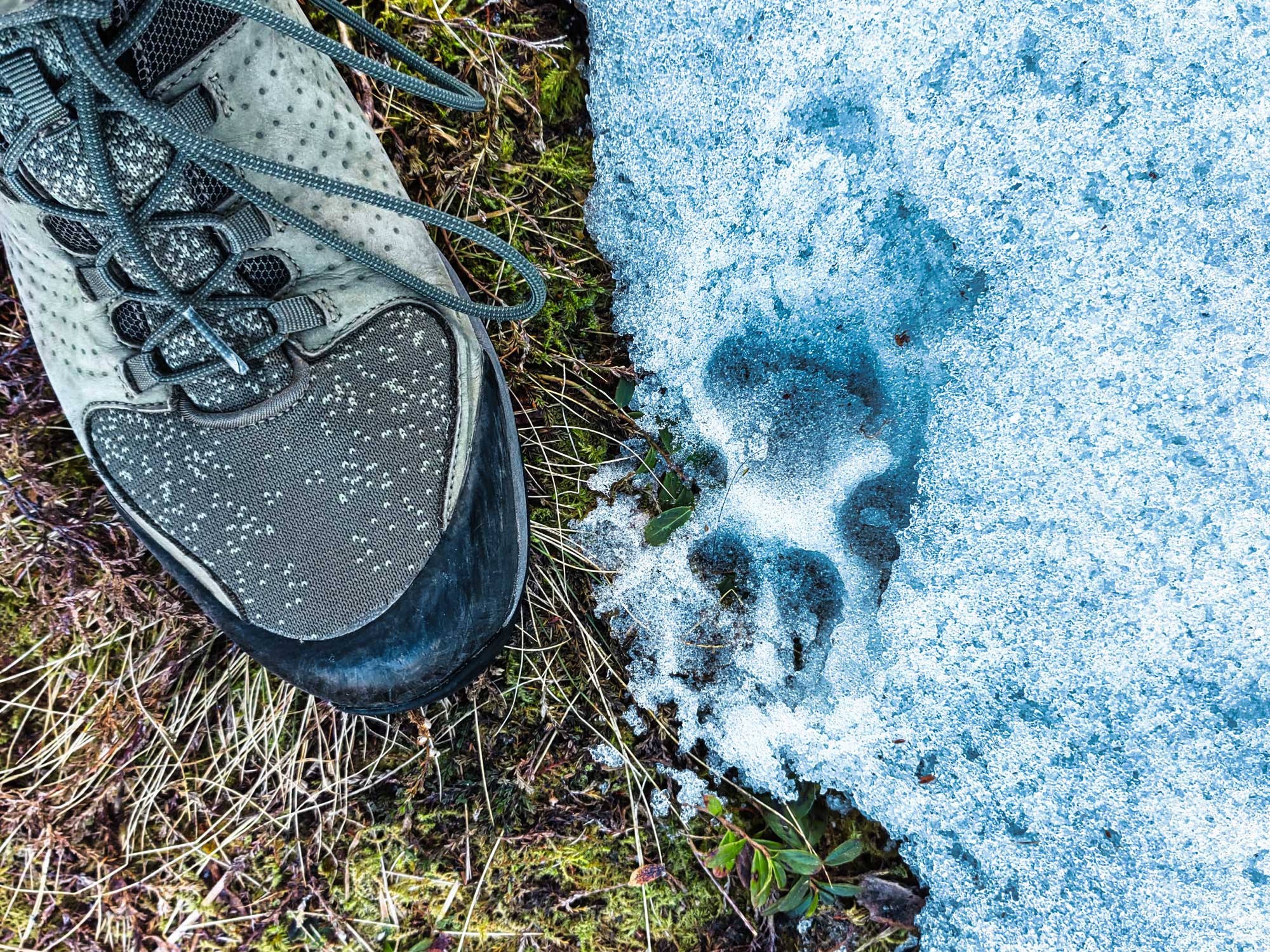 Gunnar hat dort oben übrigens bei einem Morgenspaziergang dann noch frische Spuren eines sehr sehr großen Hundes im Schnee entdeckt. Kann das sein, dass sich dort ein Wolf hin verirrt hat? Der Fährte nach konnten wir es jedenfalls eingrenzen und ein Hund war es dann eher doch nicht.