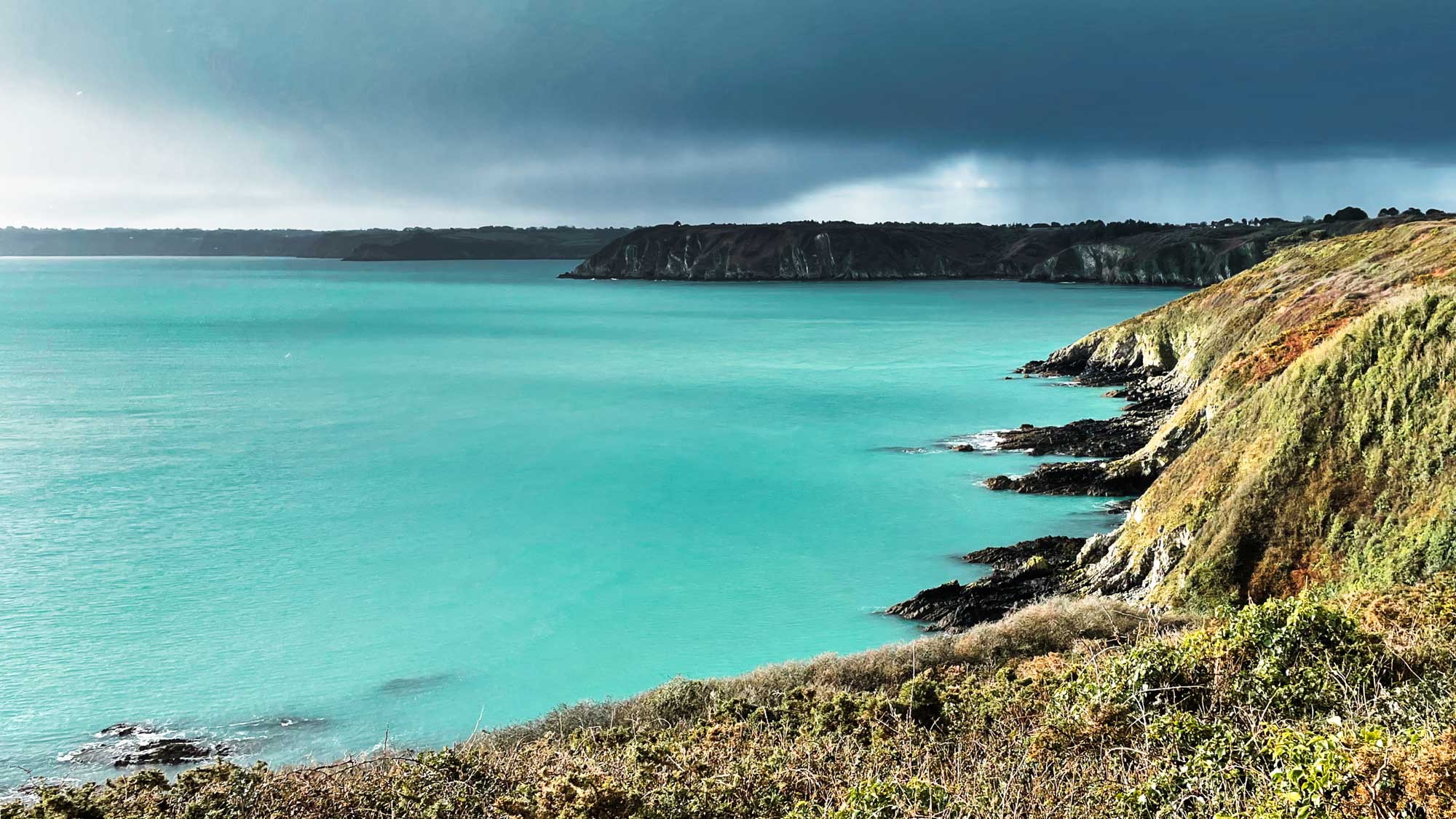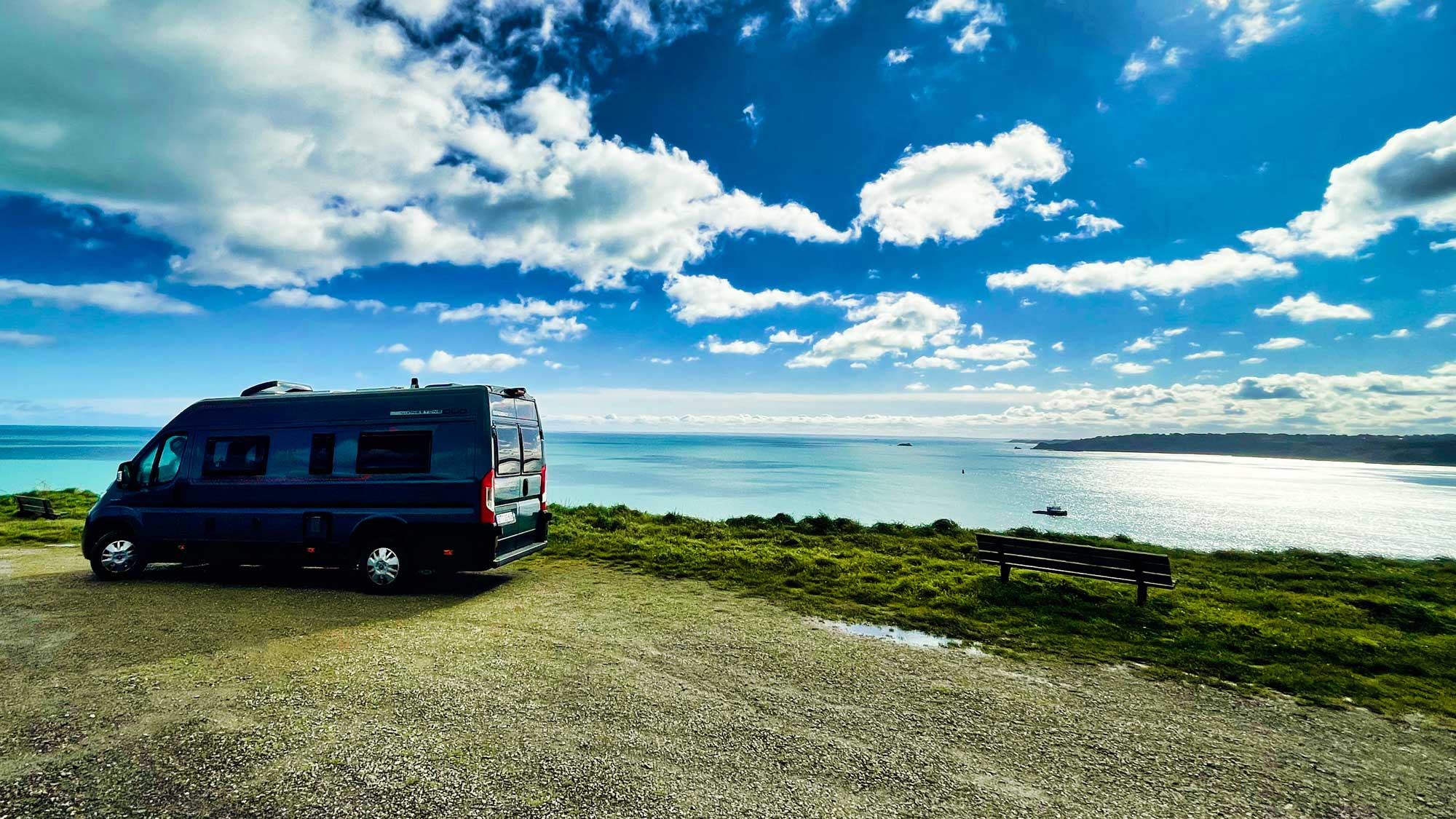 Ihr seht also es geht wirklich alles sehr ruhig und gelassen bei uns zu. Aber dann fallen uns doch wieder so ein paar News ein aus der fernen Bretagne. Bis zum letzten Artikel haben wir uns vor allem an der Côte d'Armor (Aus dem keltischen "Land am Meer") aufgehalten, in dem kleinen Fischerörtchen Bréhec haben wir den letzten Artikel gepostet und am Tag darauf sind wir den ersten Teil der Küstenstraße Route des Falaises eingetaucht, übersetzt die Klippenstraße. Abgesehen davon, dass dies landschaftlich ein beeindruckender Teil der Bretagne ist, hat uns besonders gefallen, dass man eigentlich immer völlig alleine oben auf den Klippen parken kann und abgesehen von eine paar Spaziergängern wenig los ist. Stellplatz alleine in erster Reihe, wie man es aus den Sozialen Medien über das Vanlife so vorgegaukelt bekommt, hier ist es oft so.