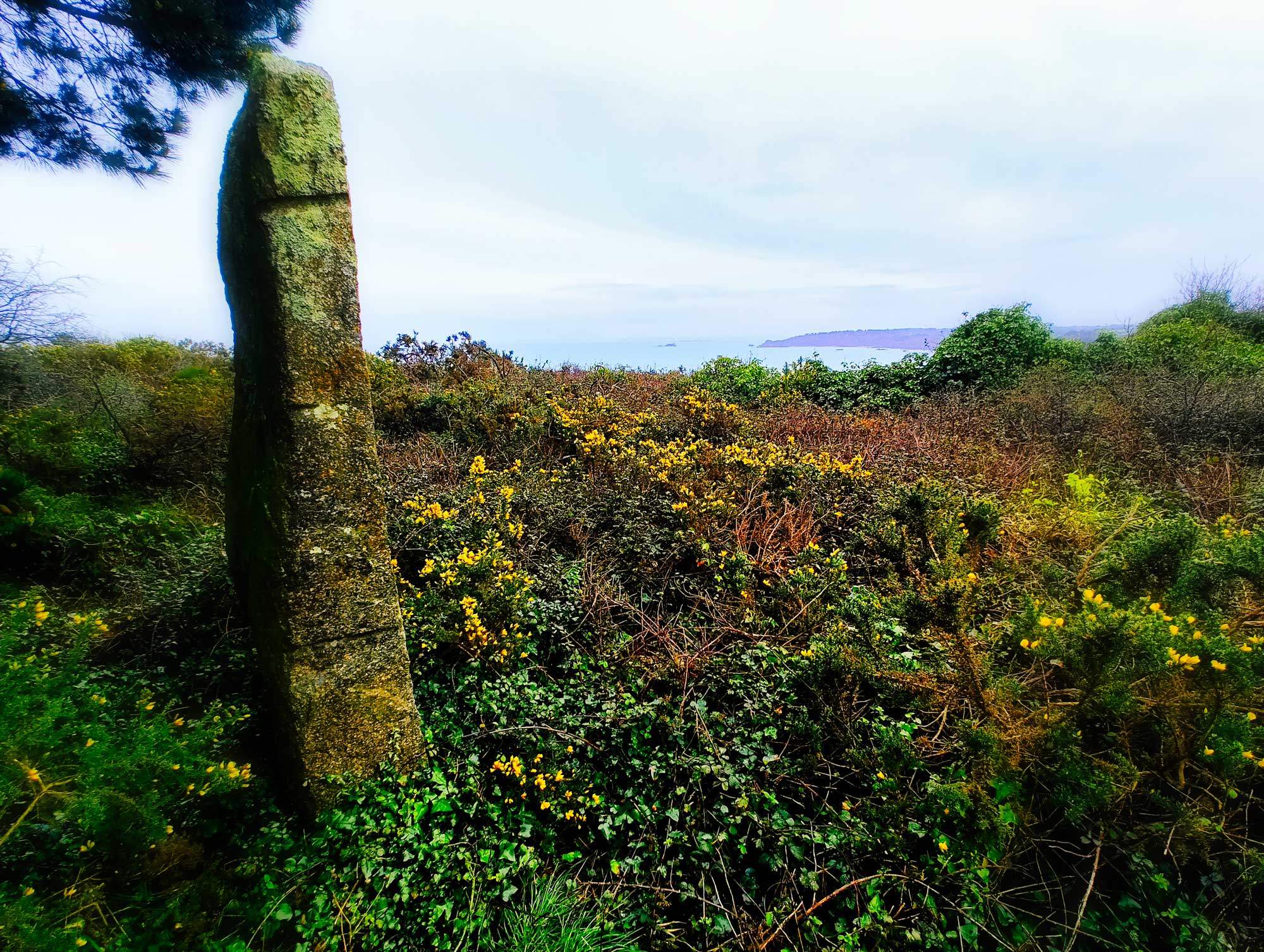 Gunnar hat nämlich an dessen Geburtstag, dort bei einer Such-Wanderungen nach einem geeigneten Ort für den Geocache, einen mannshoch aufrecht stehenden Stein entdeckt, der aufs Meer hinausschaut. Die Wortfindung für den Namen des Geocaches war eigentlich ganz einfach, da es ein Frankenstein in Frankreich für Frank aus Unterfranken war. Es ergaben sich somit schöne Wortspielereien, letztendlich wurde es "Un Frankenstein en France" mit persönlicher Widmung.