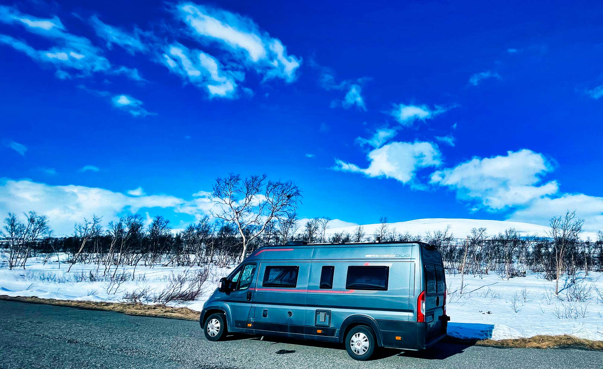 Wir sind jetzt bereits nördlich des Polarkreises und es wird bereits jetzt Ende April hier später dunkel als wir ins Bett gehen können. Letzte Nacht haben wir auf dem Saltfjell-Pass, hoch oberhalb der Baumgrenze, kurz hinter dem Polarkreis genächtig. Auch eine absolut naturnahe Erfahrung so eine Übernachtung im eigenen Hotelzimmer inmitten der rauen Arktis.