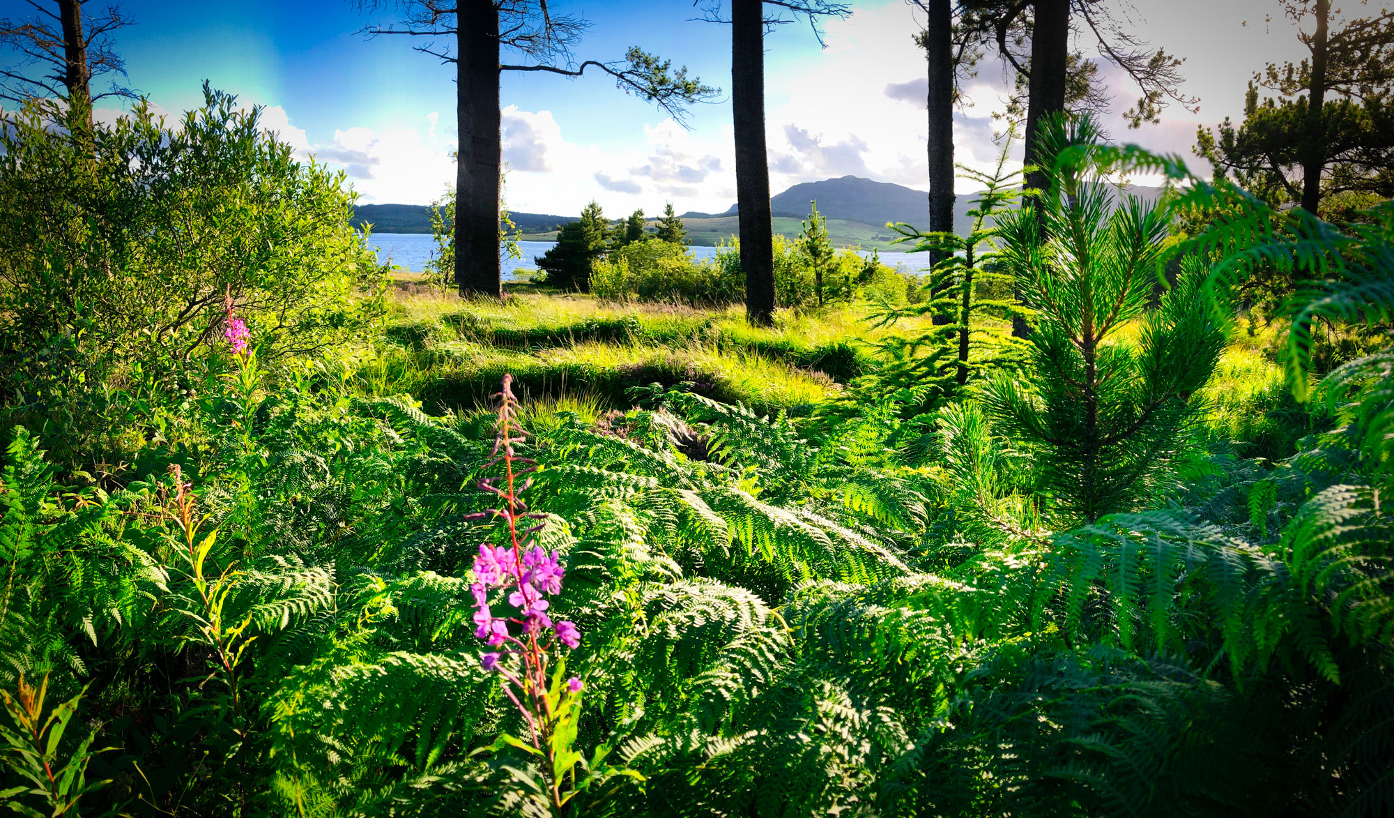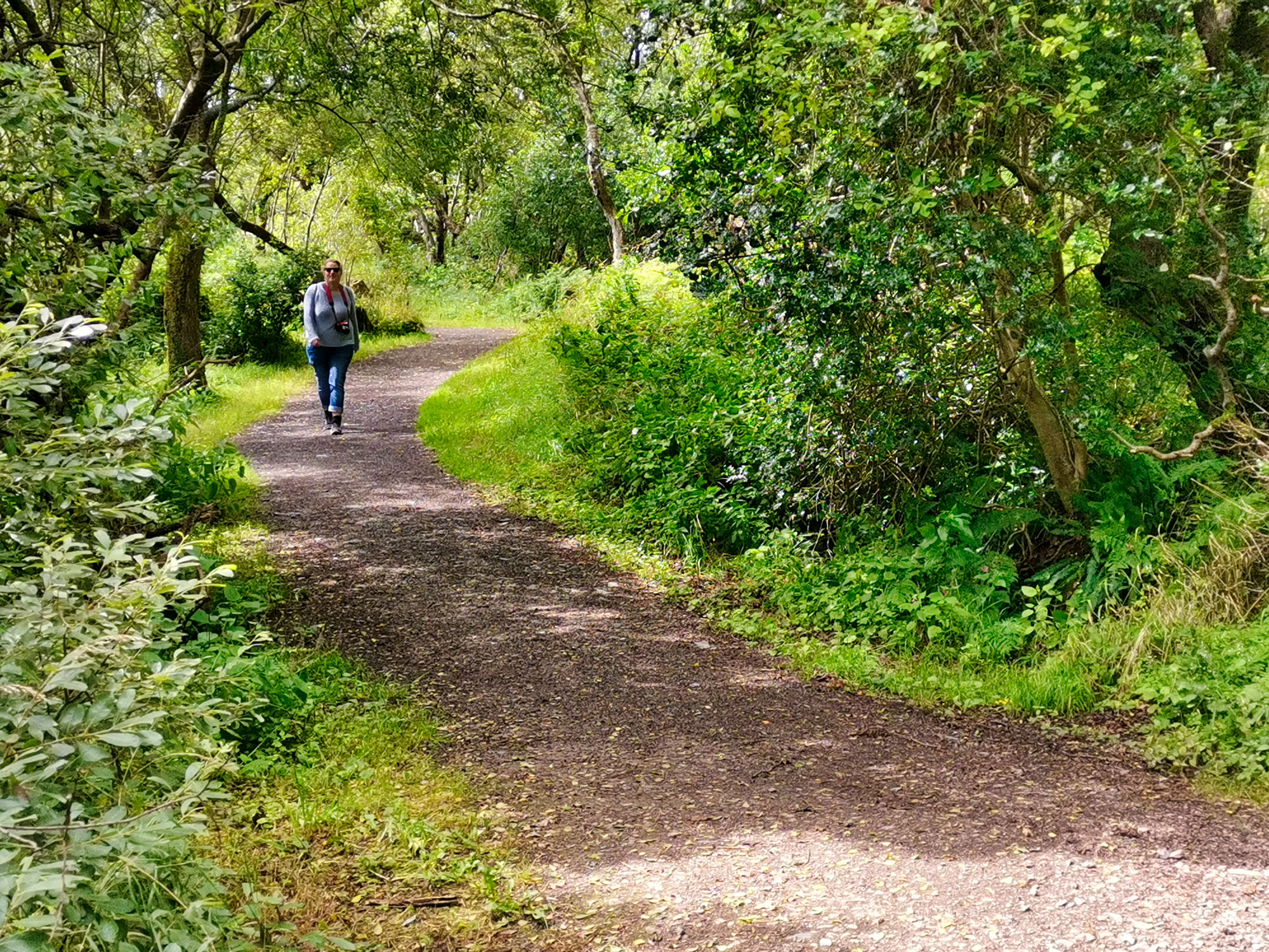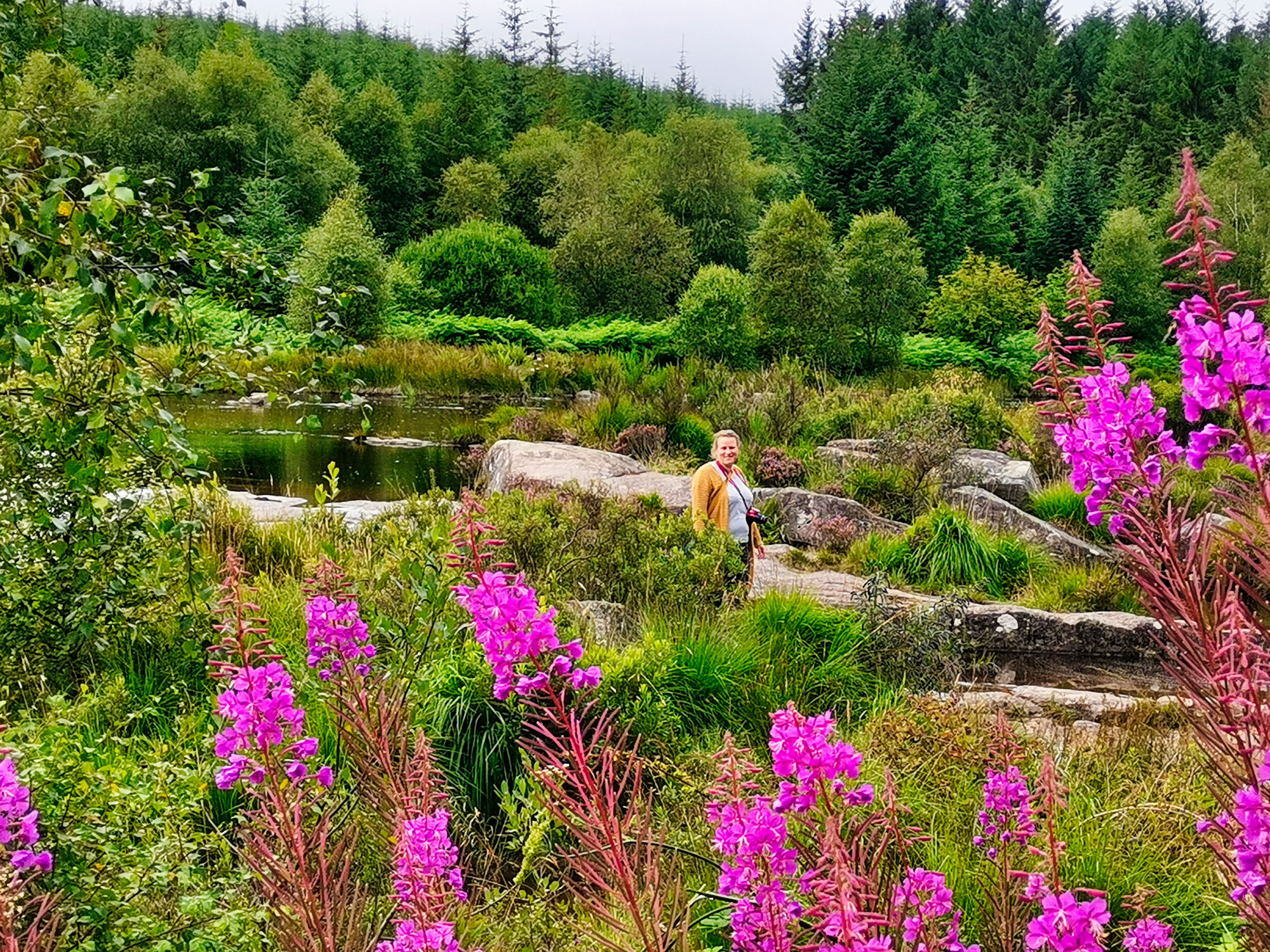 Die ersten Tage haben wir bei Caerlaverock Castle verbracht, welches zu den wenigen dreieckigen Burgen gehört. Vielmehr allerdings wie das Castle, hat uns der Märchenwald rund um die Burg verzaubert. Lange Spaziergänge unter uralten Bäumen sind hier möglich. Der Wald wurde sich fast ganz selbst überlassen, wobei die Wege gut gepflegt sind. Man schreitet durch ein wildes Durcheinander von Laubbäumen, mal bemoost mal umgestürzt mal knorrig, mal mit Nisthöhle, mal mit Efeu bis oben bewachsen. Dazwischen gibt es Moore und Bäche, Lichteinfälle fallen auf leuchtend purpurne Blütenstauden und eine hölzerne Brücke führt über einen Bach. Romantik pur! Es fehlte nur noch ein röhrender Hirsch auf einer Lichtung. Kommt man um ein Eck herum, steht man plötzlich vor einer Vogelbeobachtungsstation, mit freiem Blick auf die Heidelandschaft bis hin zum Meer. Die Station diente uns auch als vorzügliches Versteck vor einem aufdringlichen Schwarm Fliegen, den wir nicht mehr seit der Kuhweide los wurden.