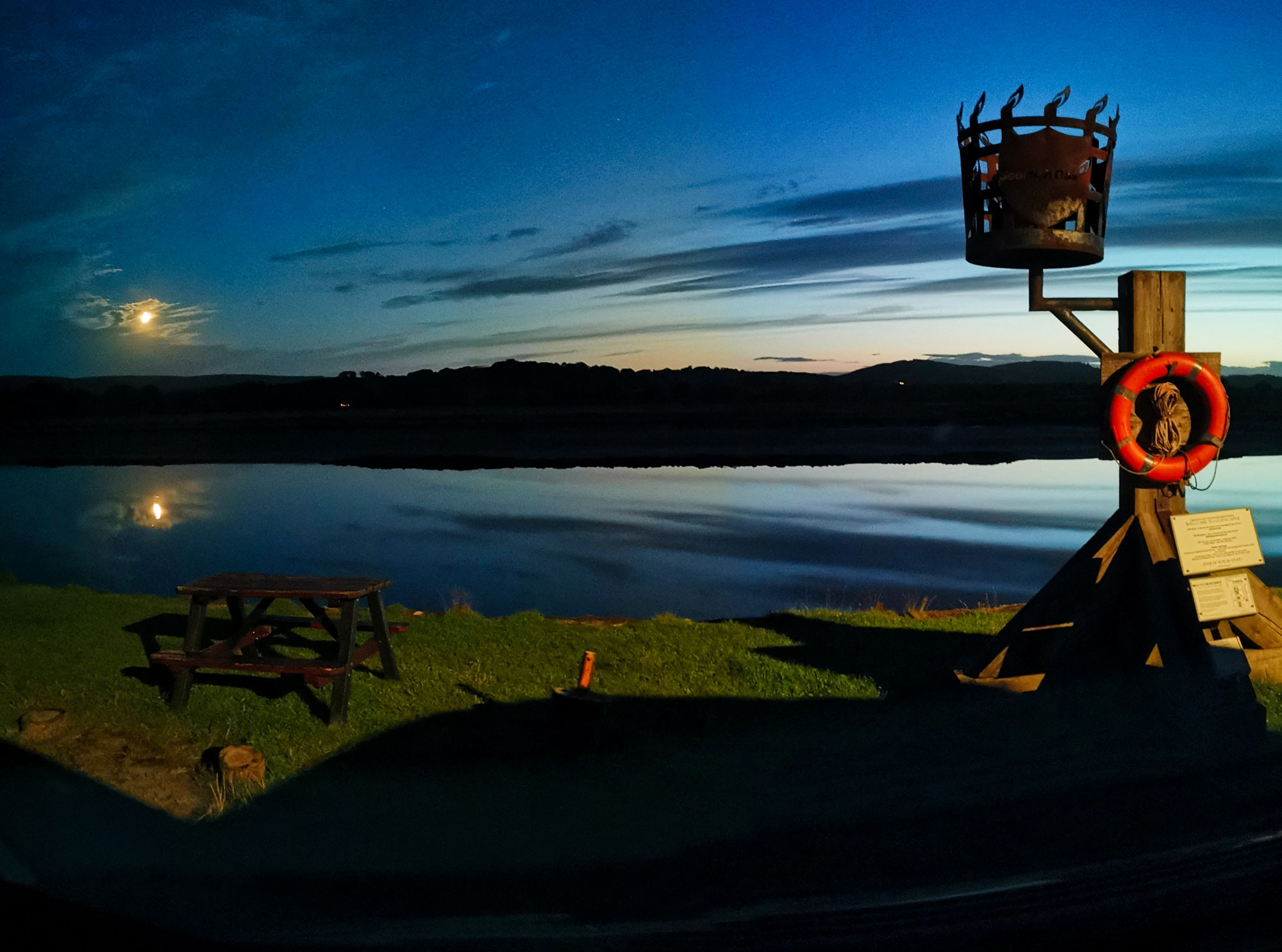 Eigentlich wollten wir danach weiterziehen und die Gegend verlassen, aber im nächsten Ort sind wir direkt wieder schwach geworden und haben uns noch einen herrlichen Sonnenuntergang am River Nith gegönnt – ein ganz besonderer Fluss, wie nicht nur die Einheimischen meinen. Neben Wildlife bis zum Umfallen gibt es hier auch eine Flutwelle, die auf Grund der Gezeiten 2x täglich flussaufwärts rollt. Bei unserem Besuch kam sie allerdings mitten in der Nacht und wir haben sie leider verpasst. Die sogenannte "Bore" – so wurde uns von Locals erzählt – gibt es wohl nur, wenn einige Faktoren zusammentreffen und sie ist in ihrer Intensität auch noch von der jeweiligen Mondphase abhängig. Es ist also gar nicht sooo leicht sie zu sehen. Oft hört man sie bevor man sie sieht, es klingt wie ein aus der Ferne herannahender Zug. Hier findet man mehr Informationen über dieses interessante Phänomen.